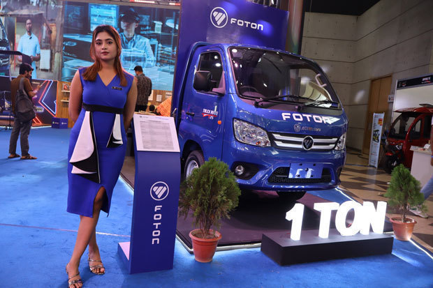 福田汽車(フォトン)は地場財閥ACIの子会社と協業してトラックを組み立てる計画=1日、ダッカ・モーターショー会場(NNA撮影)