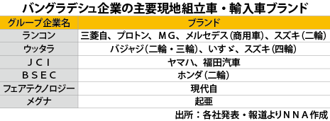バジャジを組み立て生産しているウッタラグループは、いすゞ車を日本、タイ、インドから輸入しているほか一部は受託組み立ても行っている。マティウル・ラーマン会長はNNAに対し、「中国車との差別化を図るため、日本やインドブランド組立車の現地調達率向上や品質に磨きをかけたい。日本の部品メーカーはバングラデシュに進出してほしい」とエールを送る。