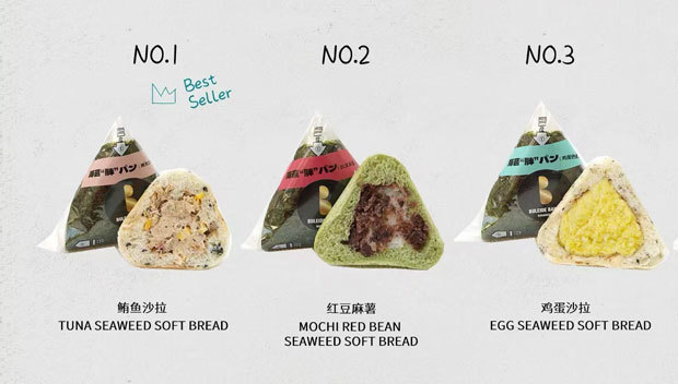 上海のベーカリーが販売するおにぎりの形をした「のりパン」。小浅が次に狙うのはベーカリー市場だ[/caption]"
