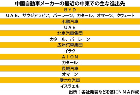 産油国が多い中東だが、脱炭素の一環で現地政府がEVの普及を推進していることも、中国メーカーを引き付ける要因になっているとみられる。