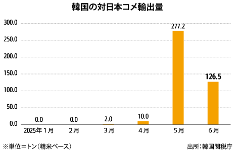 日本は輸入米に対して1キログラム当たり約340円の高関税を課している。しかし、日本のコメ価格が高騰したことで、高関税でも採算が合う状況になったことが、韓国のコメ輸出を後押しした。