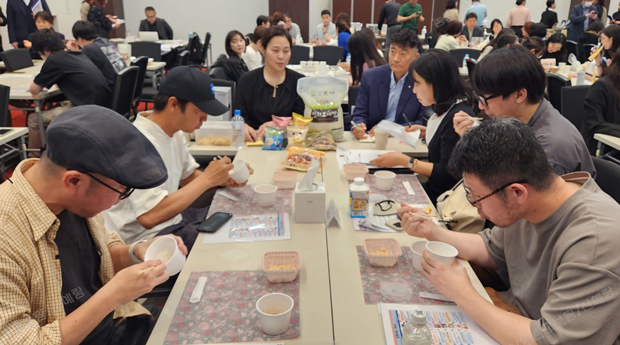 東京で開催された「Kフードフェア」で韓国産のコメを試食する参加者(NH農協提供)