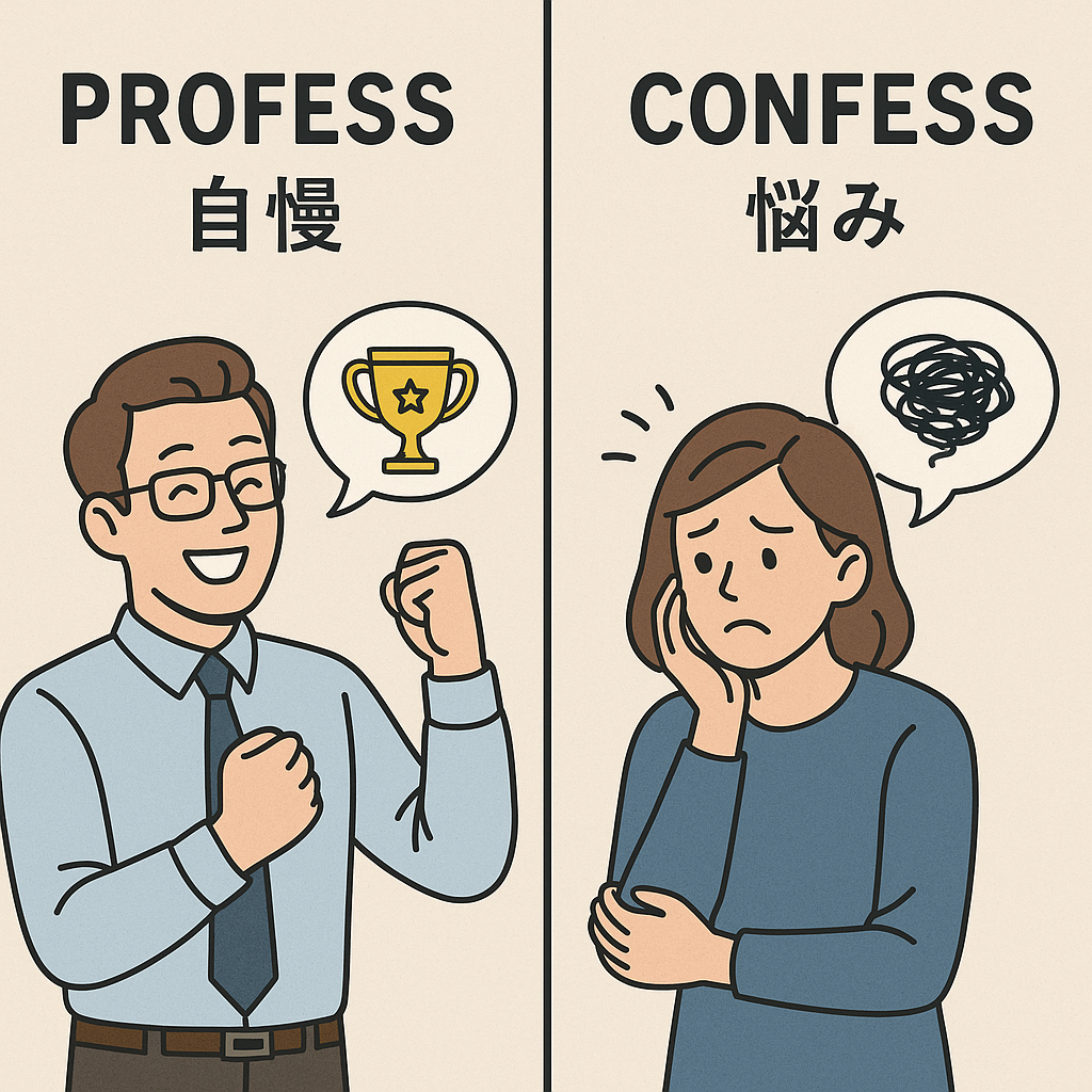 私は、人が自分自身の情報を伝える方法には、大きく二つの種類があると考えています。それは、英語で言う「profess」と「confess」です。「Profess」は、「プロフェッショナル(professional)」の語源にもなっており、多くの人の前で何かを宣言するという意味を持ちます。一方、「Confess」は、自分の過ちや他者に知られたくないことを告白することを指します。つまり、Professは自信を持って自分の話を伝え、ある種の誇りや自慢を含むものです。一方で、Confessは、自分の困っていることや葛藤を正直に打ち明けるものです。この二つのシンプルな情報の伝え方を活用することで、自分自身の壁を取り壊し、相手に心を開いてもらうことができます。また、それによって助けを求めたり、お互いに支え合う関係を築くことも可能になります。このように、お互いがProfessとConfessを活用しながら対話を重ねていけば、自然と助け合い、支え合う関係が生まれます。相手が困っているときには手を差し伸べ、相手が得意なことを発揮したときには褒めたり、認めたりすることで、より良いコミュニケーションのキャッチボールが生まれるのではないでしょうか。