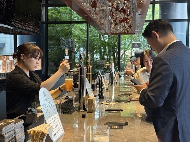 平日でも午後5時半でウエーティングが出るほどで、売り上げや反響は思っていた以上に順調だ。注ぎ方によって異なる風味を楽しめるプレミアムビールを体験できることや立ち飲み式のコンセプトを導入したことが好評の要因だろう。