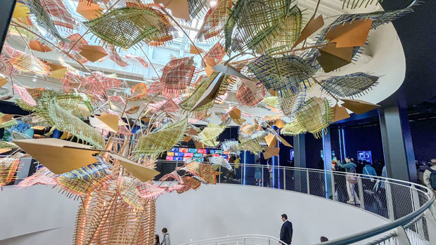 マレーシアパビリオン内部の中央に設置された「調和の木」=4月、大阪市内(NNA撮影)