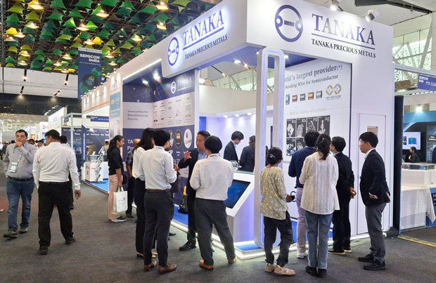 半導体産業の展示会「セミコン・インディア2025」(9月2~4日)で設けた田中貴金属のブース=9月、インドの首都ニューデリー(NNA撮影)[/caption]