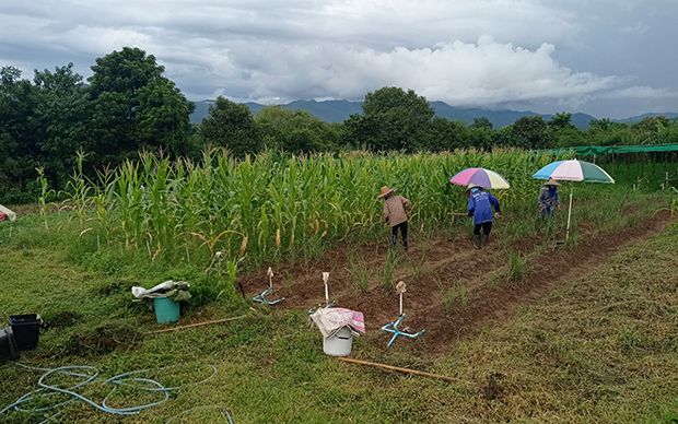 リビング・ルーツの実験型農園「リビング・ルーツ・ファーム」では常時15種類ほどの作物を育てている=10月17日、タイ・チェンマイ県(NNA撮影)[/caption]