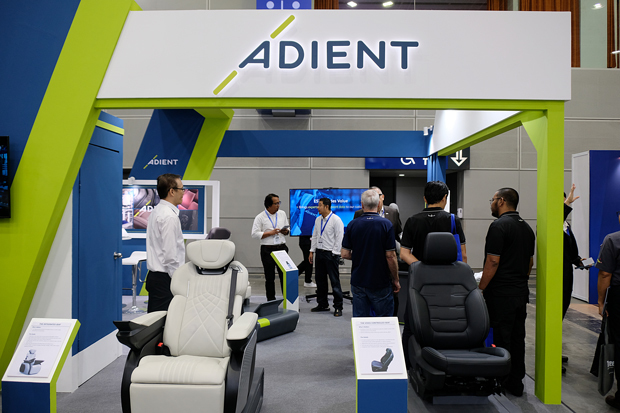 自動車用シート大手の米アディエントは、無重力状態で計測した「中立姿勢」を基に背骨や筋肉に負担がかからないように設計されたマッサージ機能付き「ゼログラビティー(無重力)シート」や、音声操作機能が付いた最新のEV用シートを展示している。車両の底にバッテリーを搭載するEVは内燃機関(ICE)車に比べて車高が高いため、車内の頭上スペースを確保するようにシートが低めに設計されているのが特徴だ。