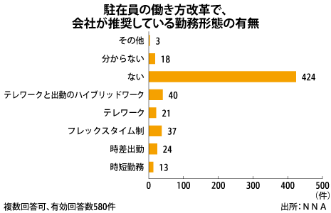 通勤方法(複数回答可)は「公共交通機関」が最多の240件となり、「徒歩」は152件、「タクシー」は58件。「社用車」は226件だった。
