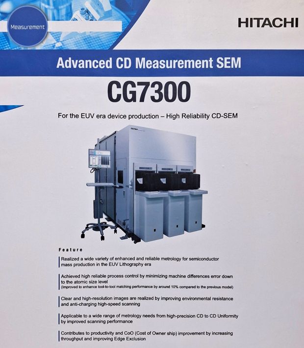 半導体の回路線幅を測定する「測長SEM」の説明パネル=9月、「セミコン・インディア2025」会場(NNA撮影)[/caption]
