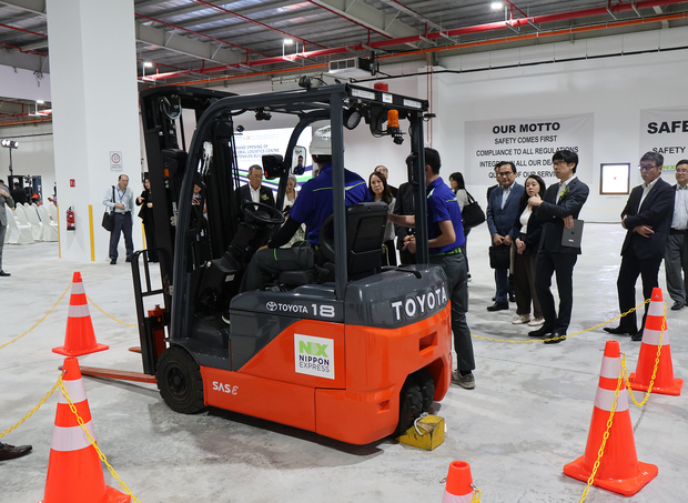 開所式ではフォークリフトのデモンストレーションが行われた=21日、シンガポール西部(NNA撮影)