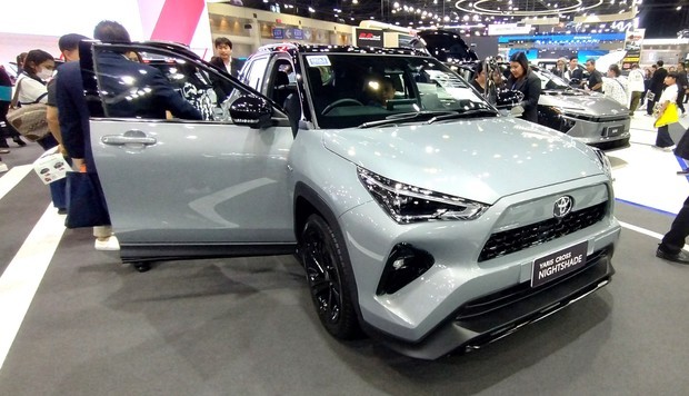 トヨタはタイで最も売れているHV「ヤリス・クロス」の特別仕様車「ヤリス・クロス・ナイトシェード」を展示=11月29日、ノンタブリ県(NNA撮影)[/caption]