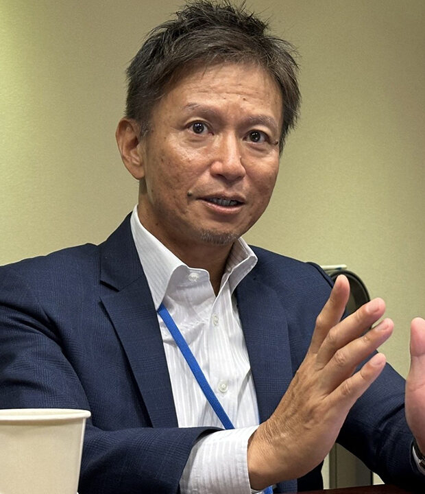 取材に答える台湾野村総研の田崎嘉邦副総経理(NNA撮影)