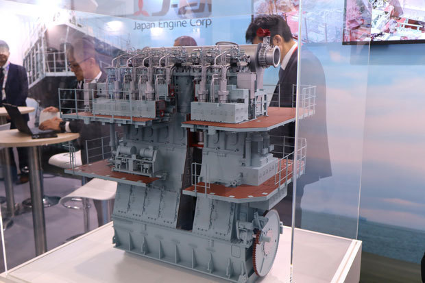 ジャパンエンジンコーポは「中国国際海事会展」でアンモニア燃料エンジンを紹介した。展示模型の大きさは実際の15分の1=4日、上海市